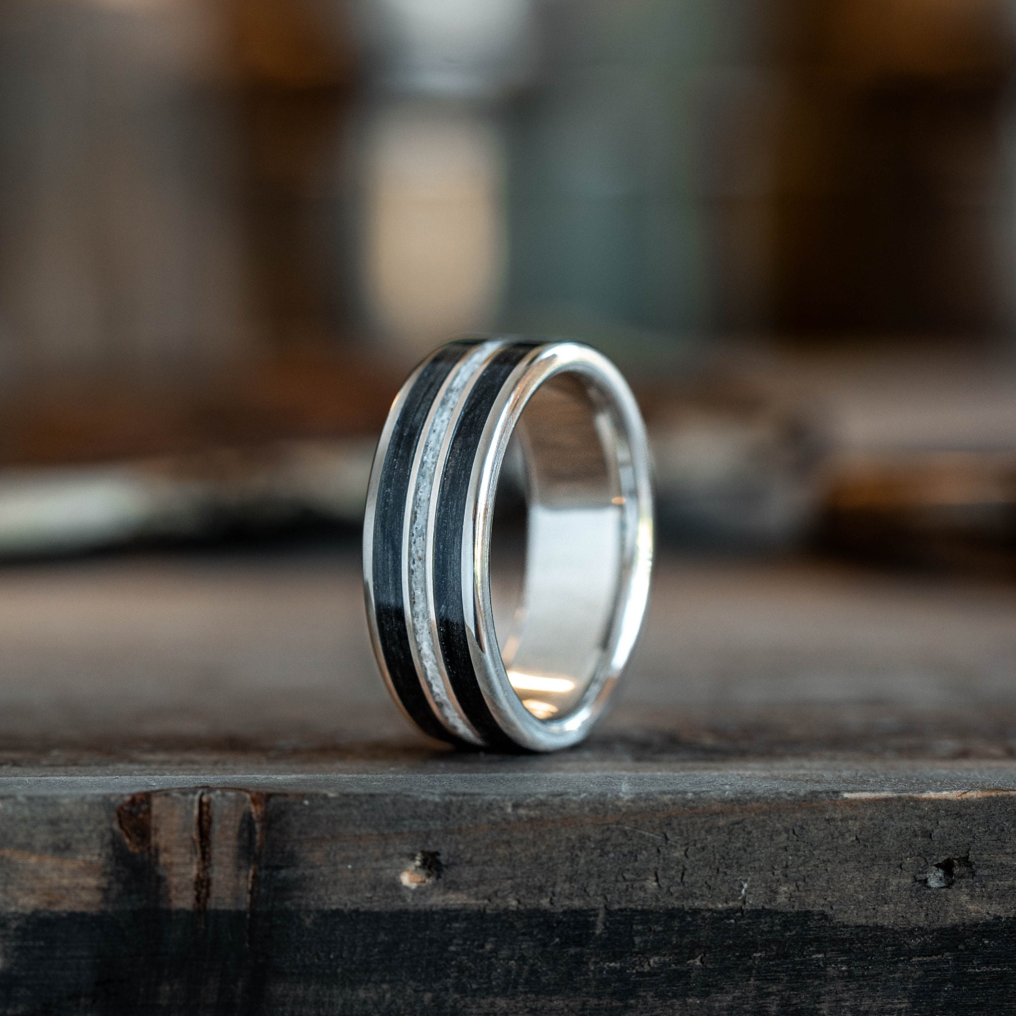 Elk Antler And Whiskey Barrel Men S Wedding Band In Solid Gold Ring The Frontiersman In Gold Rustic And Main Etsy