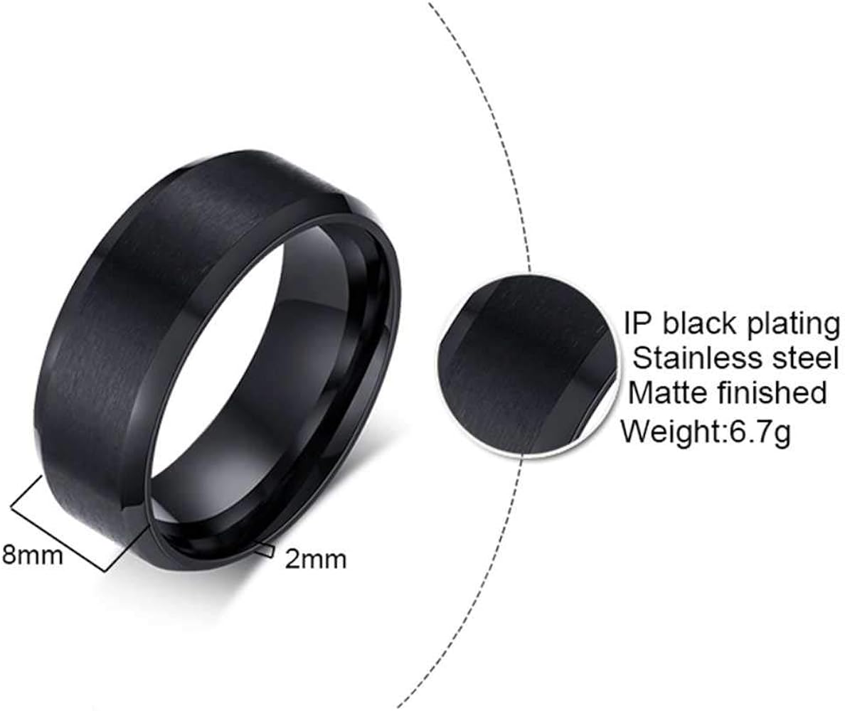 8mm Matte Black Stainless Steel Wedding Band Ring Metal Amazon De Fashion